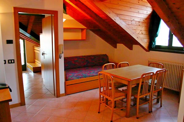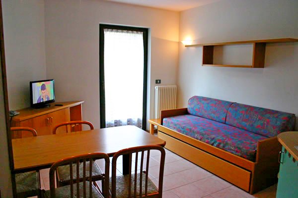 Il residence disposto su quattro piani fornisce appartamenti di 4/5 posti letto ( Stanza a tre letti e divano letto a due posti in soggiorno), soggiorno con angolo cottura, doccia, balcone.